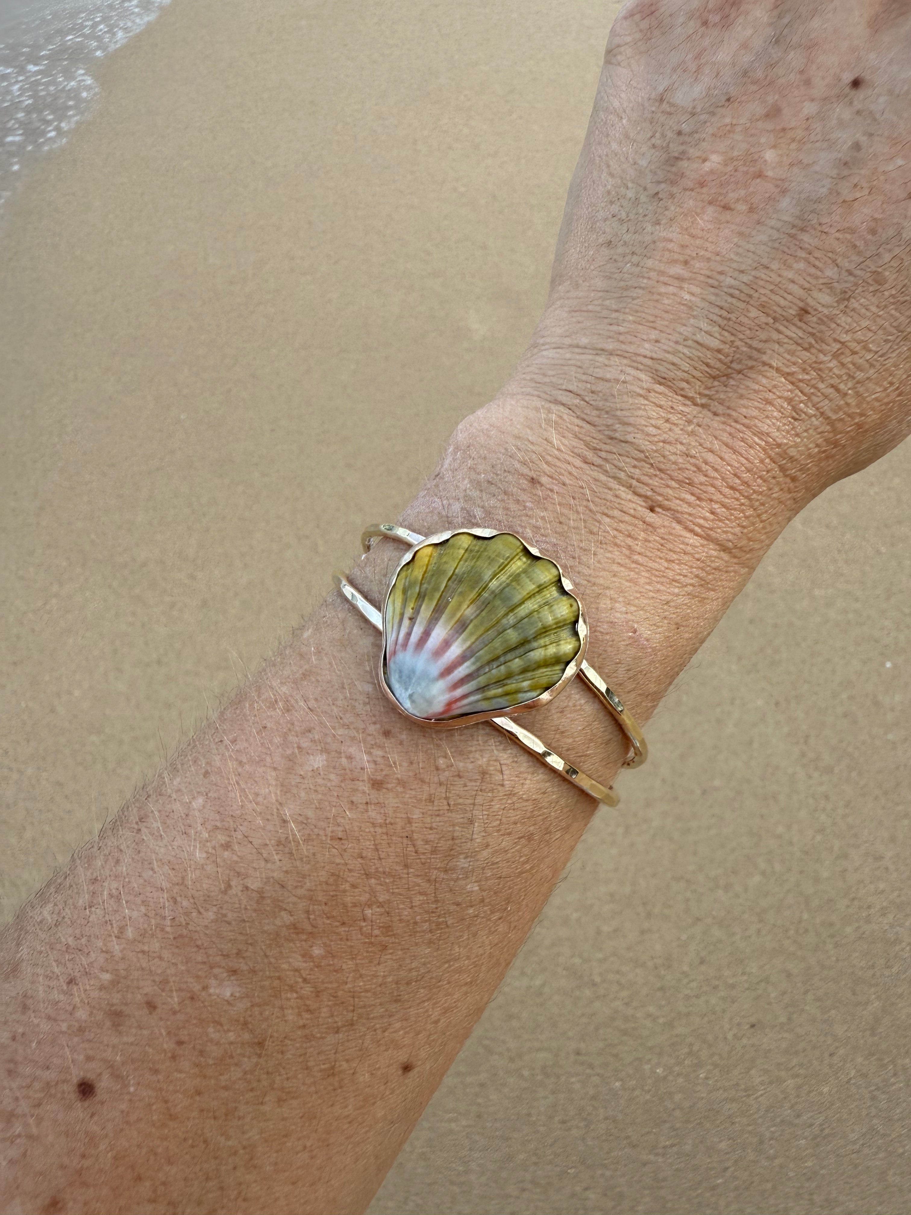 Gold Double Band Moonrise Shell Cuff Bracelet.