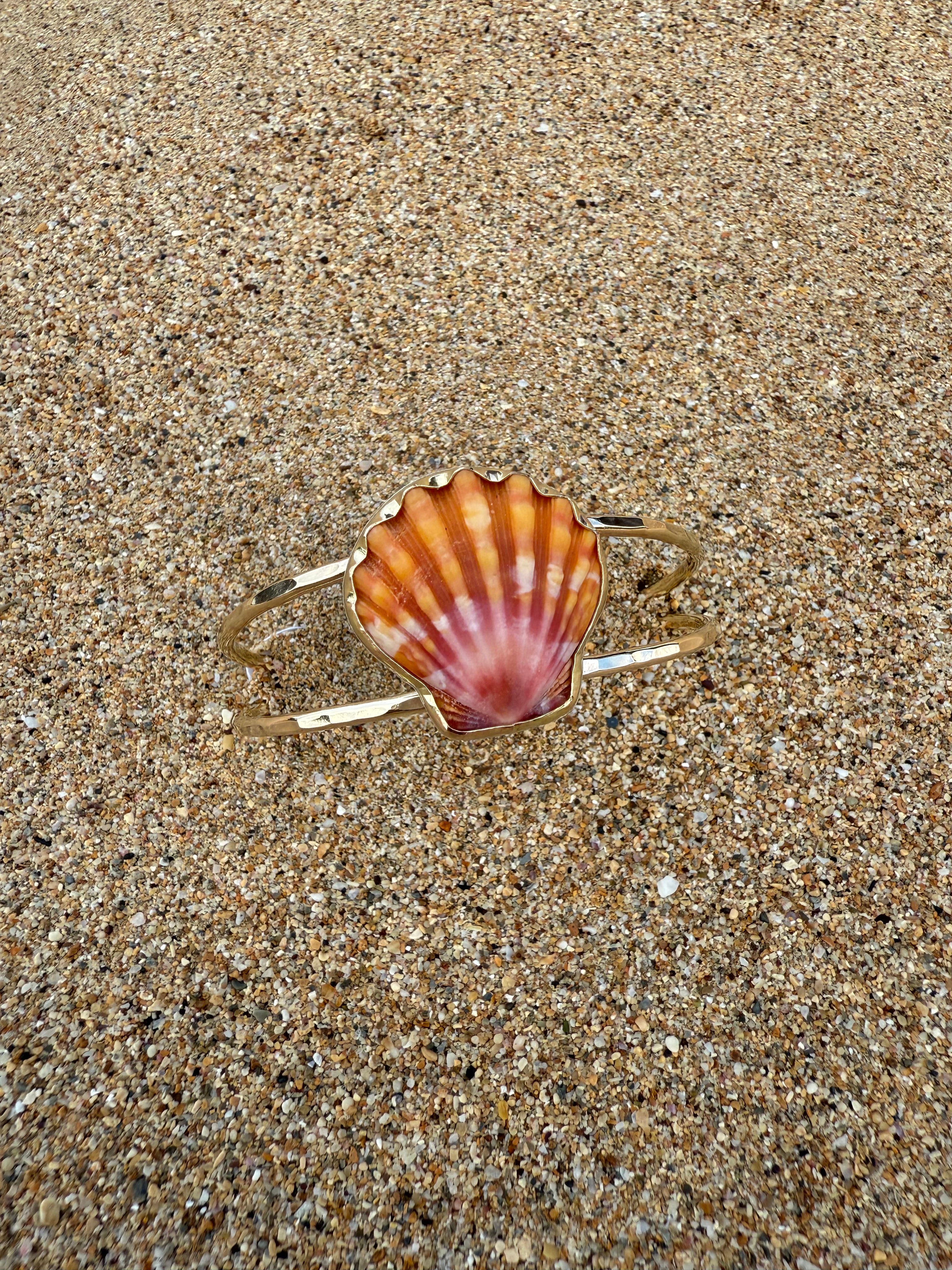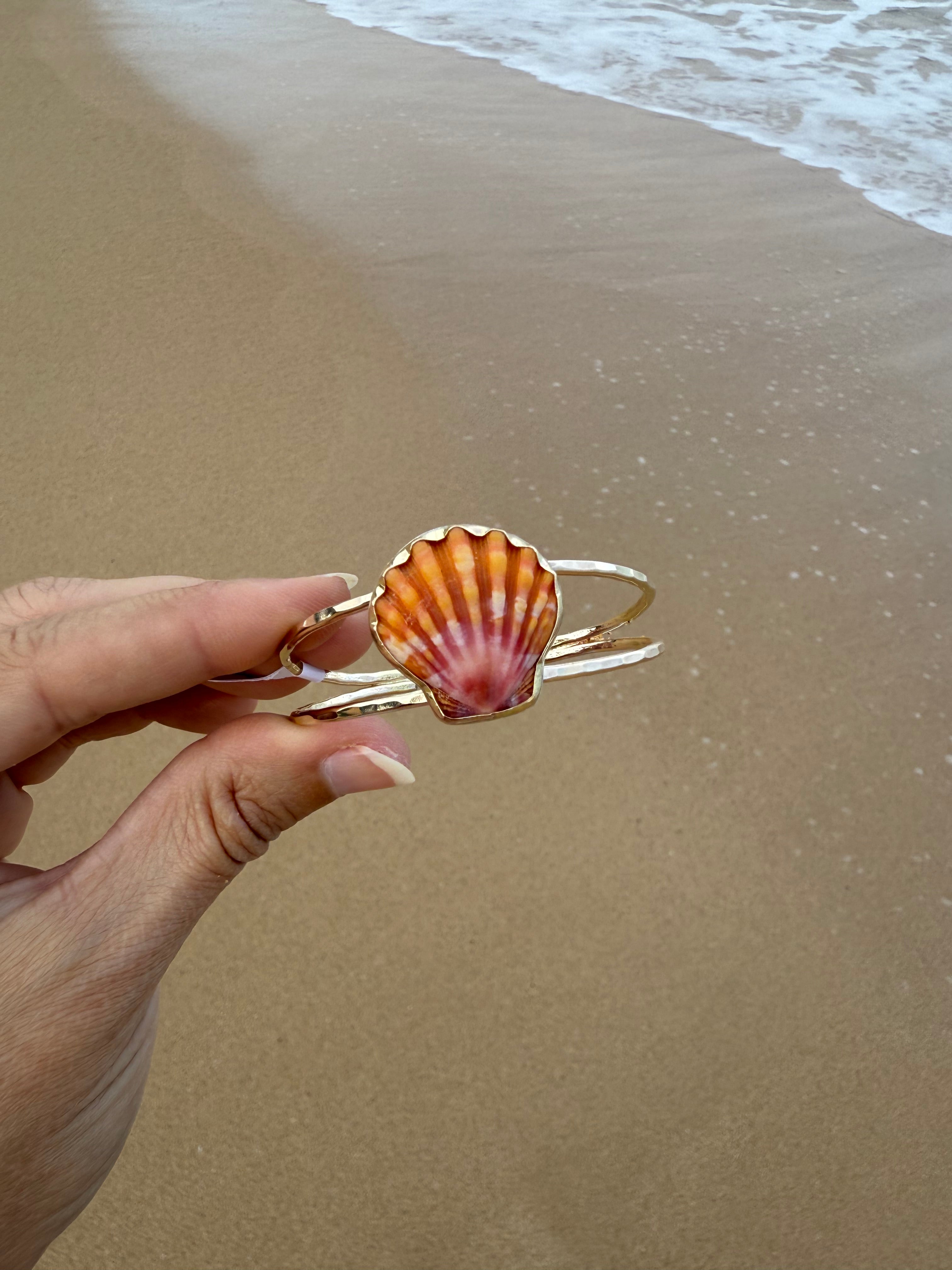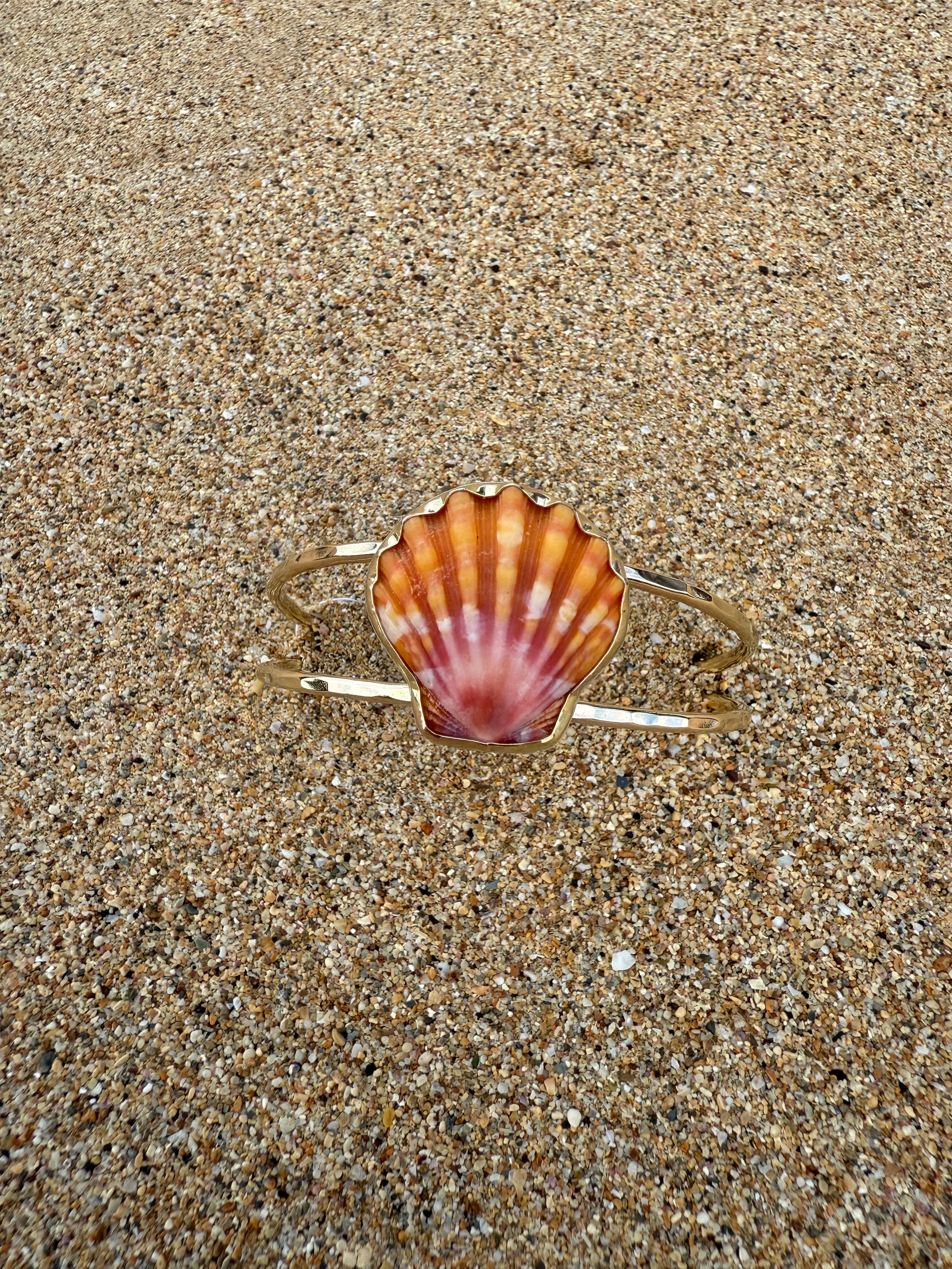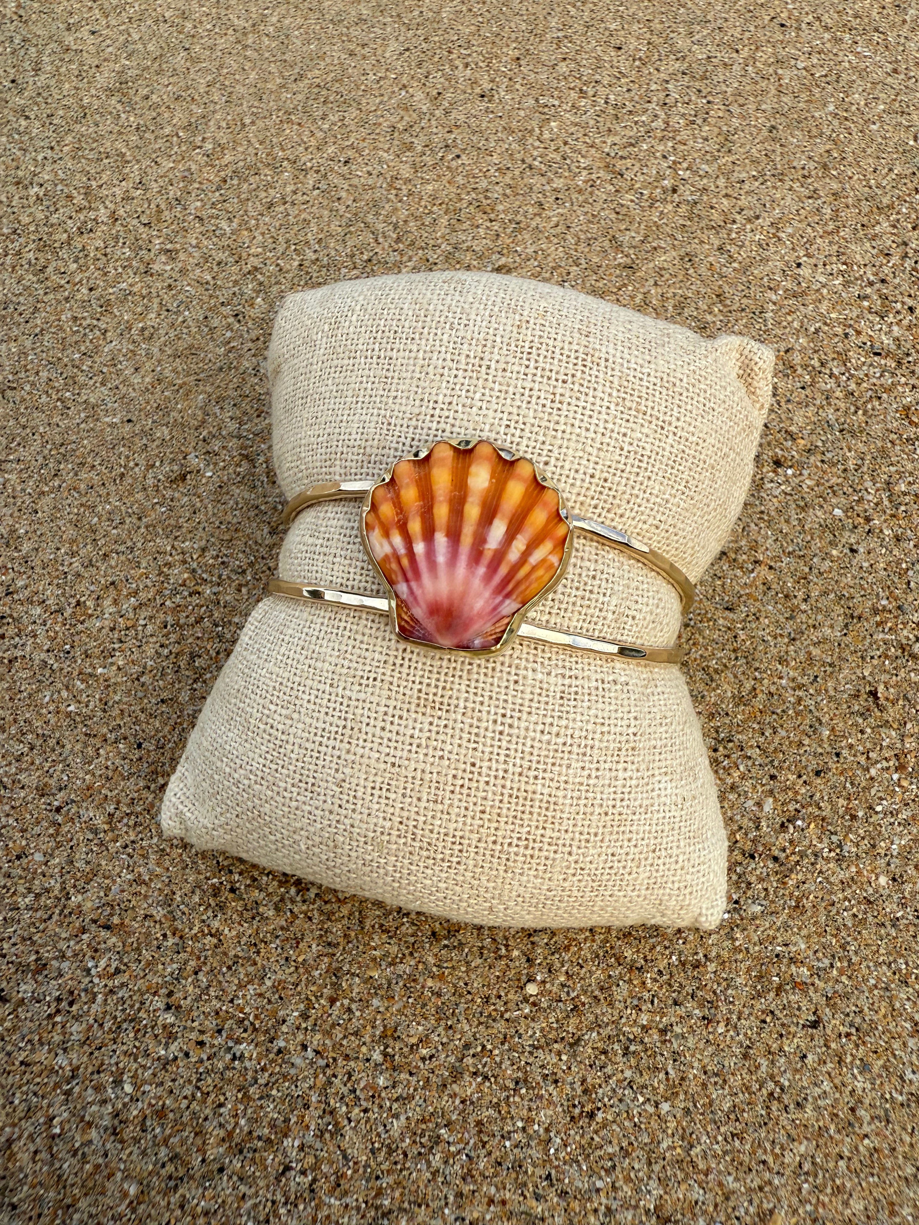 Double Banded Gold Orange Sunrise Shell Cuff Bracelet.